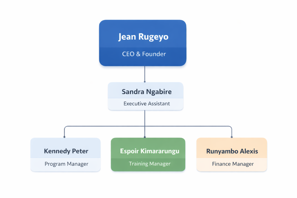 As CEO & Founder, Jean provides strategic direction, cultivates partnerships, and drives the organization’s mission to deliver sustainable, high-impact solutions. He holds a Bachelor’s degree in Law and a Diploma from the Institute of Legal Practice and Development (ILPD) in Rwanda.